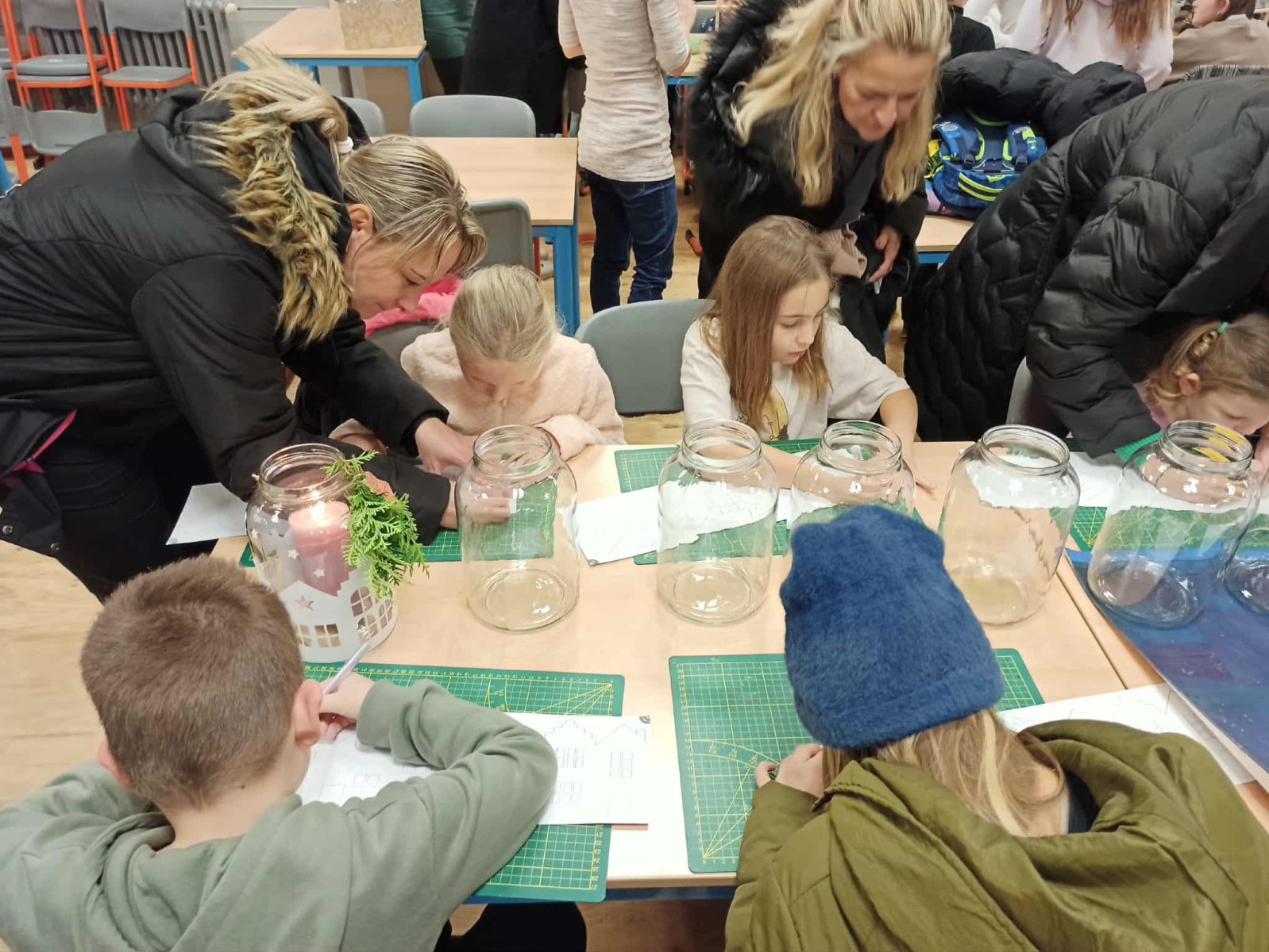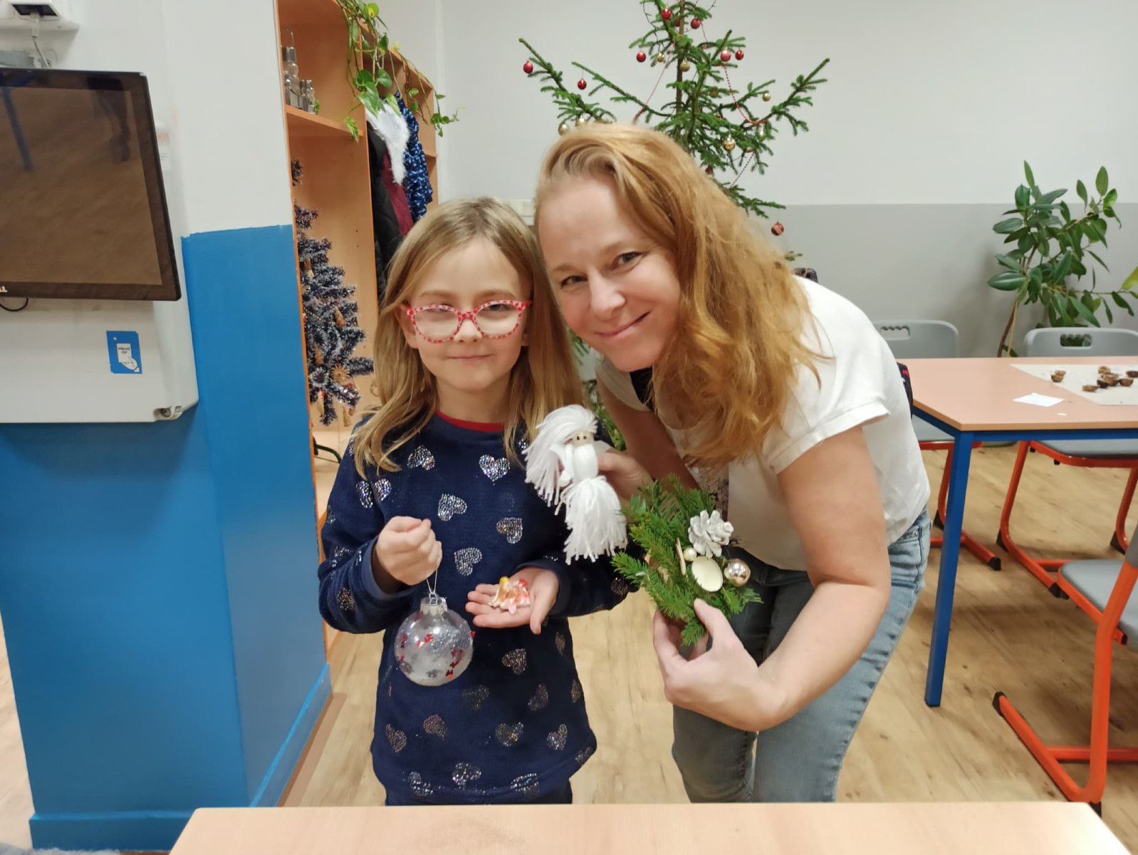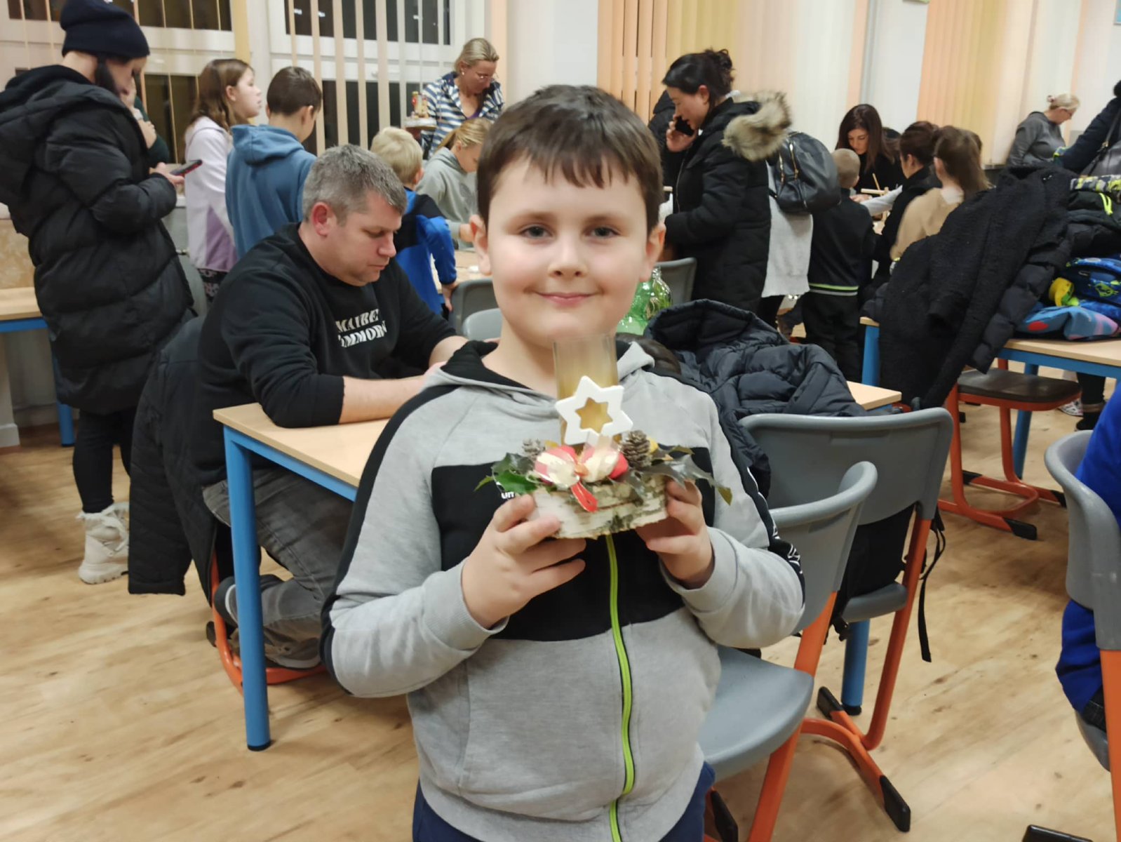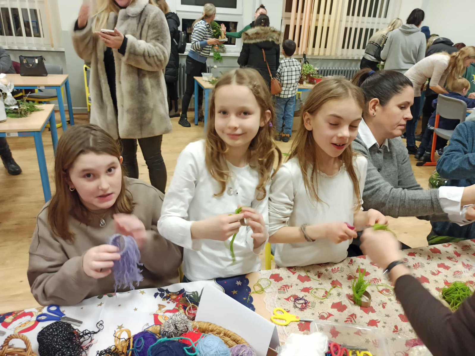 Paní vychovatelky z družinky letos připravily rodičům a přátelům školy skutečnou sváteční nadílku. Zájem byl obrovský – a každý si mohl vybrat podle chuti i tvořivého rozpoložení. Vyráběly se lucerničky, plovoucí svíčky, vlněné čepičky, andílci, závěsné větve na dveře i ozdobná prkýnka… zkrátka vánoční radost v každé podobě. Velké poděkování patří i našim šikovným kuchařkám, které nám dopřály tvarohový koláč a hřejivý čaj – bez nich by ta adventní pohoda nebyla úplná. Děkujeme všem, kteří dorazili a svou přítomností vytvořili krásnou, laskavou atmosféru.
