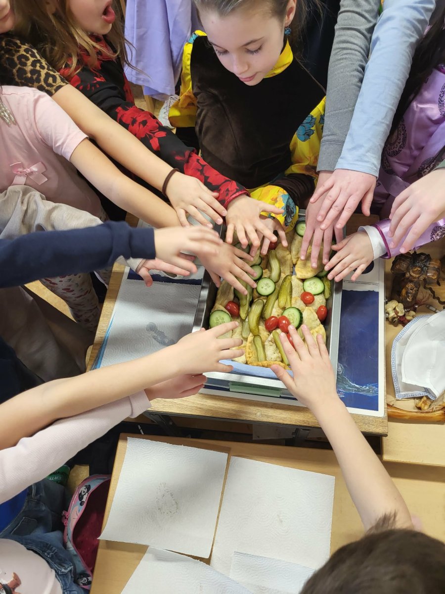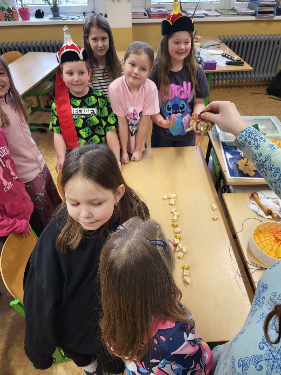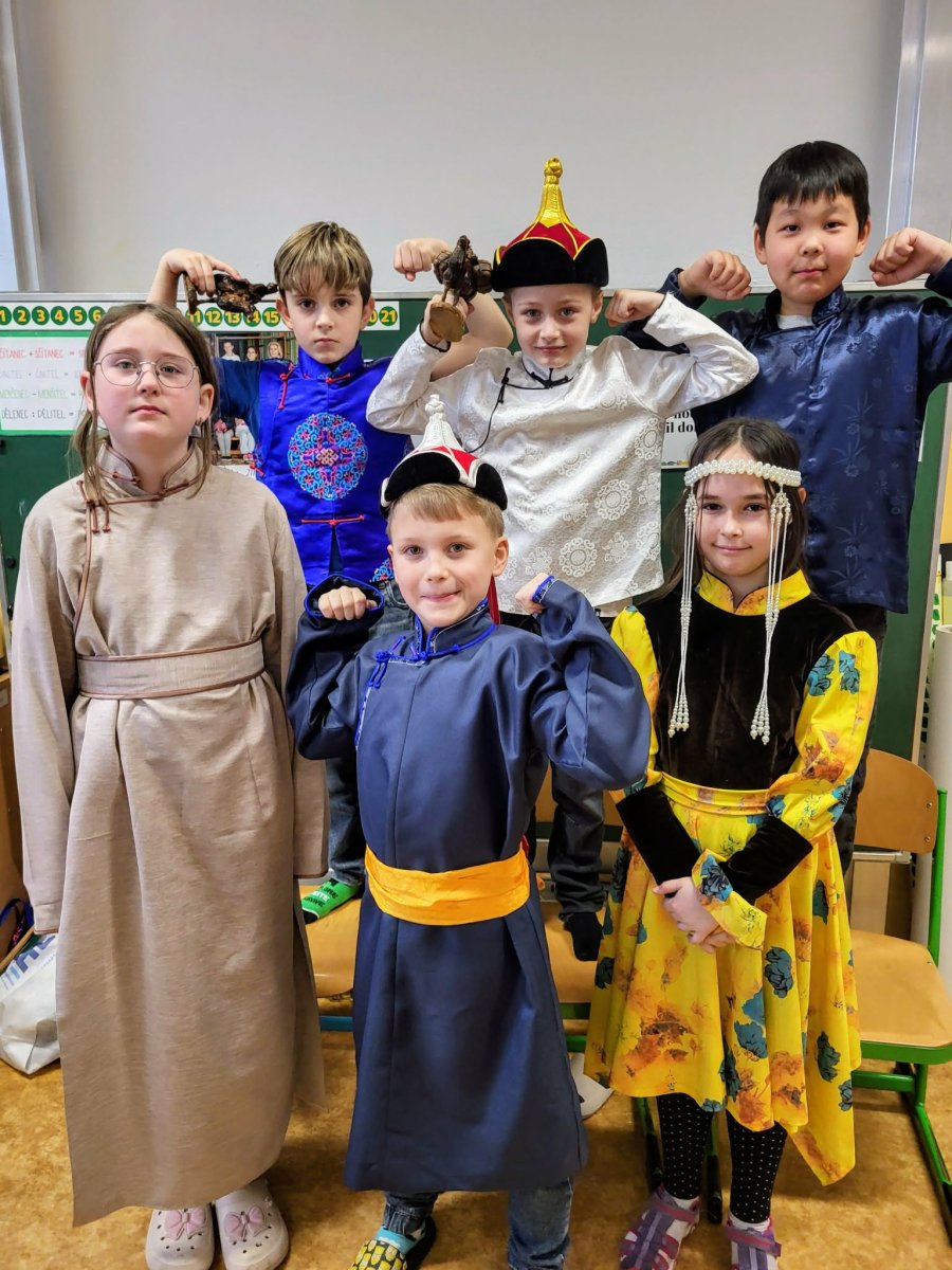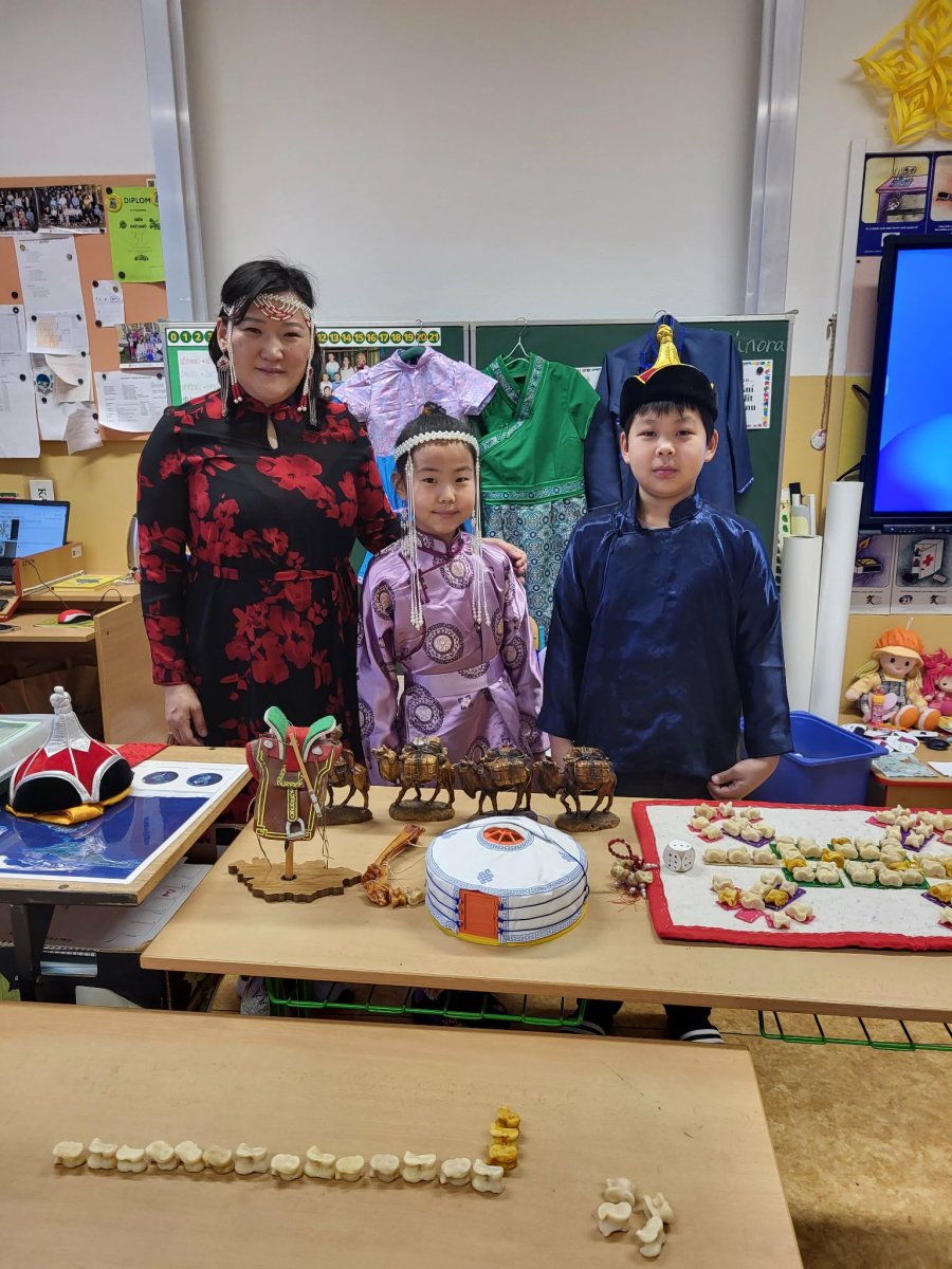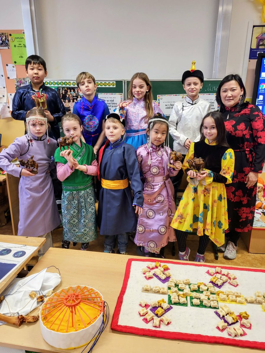 Naši mongolští spolužáci slaví jeden z hlavních svátků "Cagán sar"(Bílý měsíc) mongolský lunární Nový rok. Ve třídě 3.C jsme si dnes vyzkoušeli, díky paní asistentce Sáře, tradiční mongolské kroje, ochutnali jídlo a zahráli hry. Dozvěděli jsme se spoustu informací o tamním životě a kultuře. Byla to vskutku netradiční, velmi zajímavá a poučná hodina.