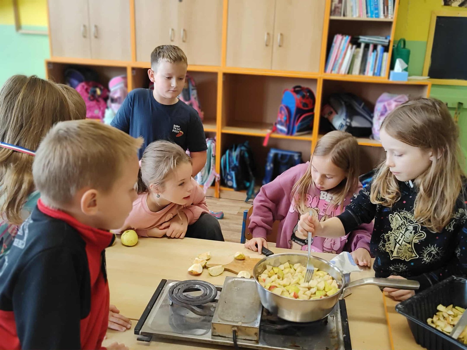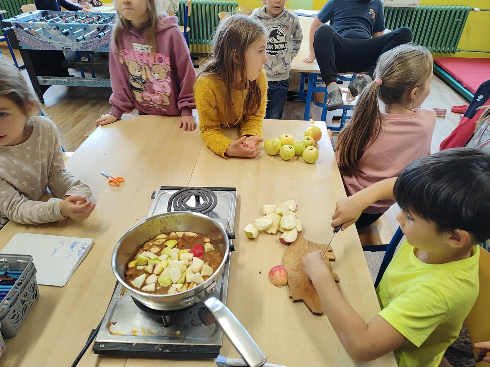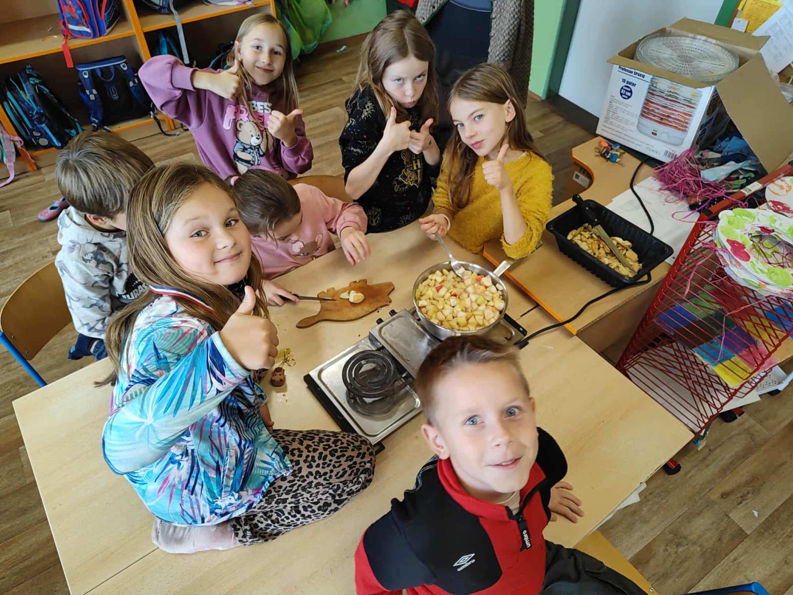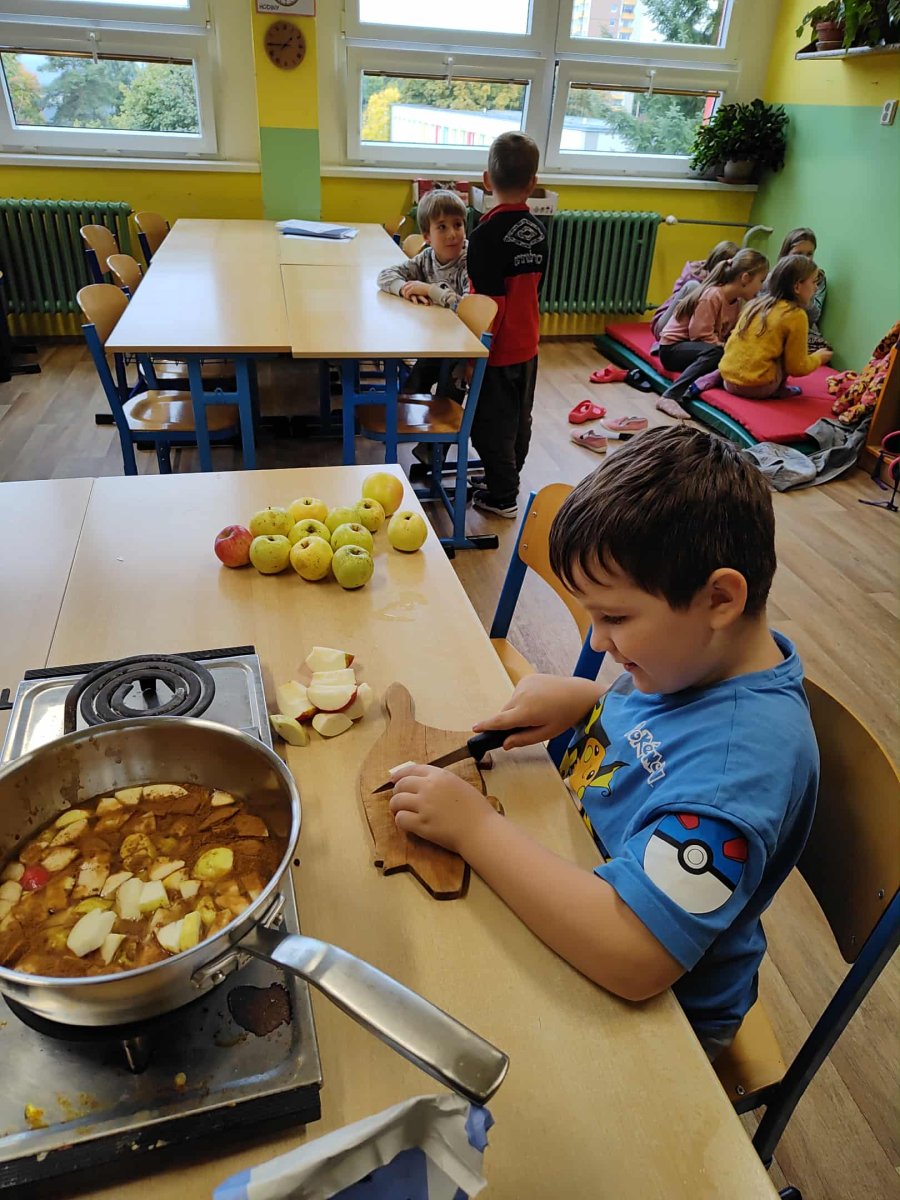 Zprávičky z oddělení ŠD Bublinky. Celý týden se nesl v duchu tématu „CHUTĚ A BARVY PODZIMU“. Vyzkoušeli jsme si tisk z výšky pomocí jablka, nakrájeli a usušili jablíčka na křížaly a také uvařili voňavý jablečný kompot. Teď už se všichni moc těšíme na JABLEČNÉ ODPOLEDNE S RODIČI! Vaše Mirka Bublinka