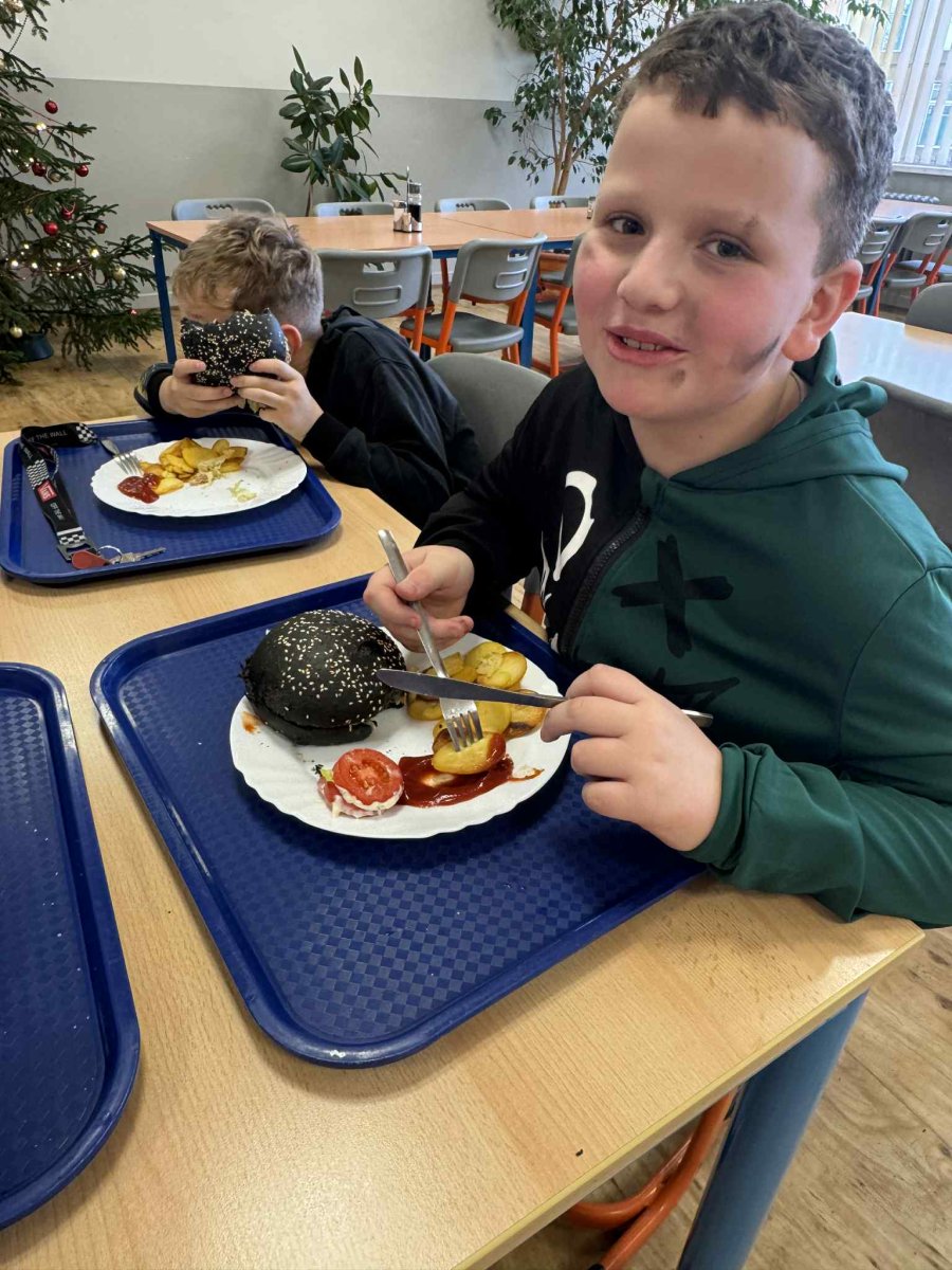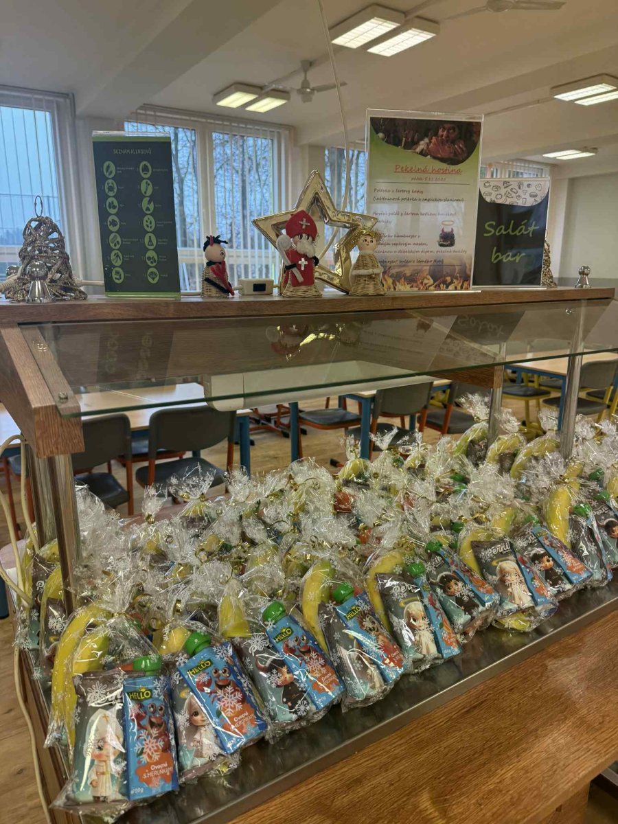 Dnes se ve školní jídelně pořádala PEKELNÁ HOSTINA. Servírovala se polévka z čertovy kapsy a Luciferův hamburger. Paní kuchařky pak pro žáky celé školy a její zaměstnance připravily Mikulášské balíčky. Děkujeme!