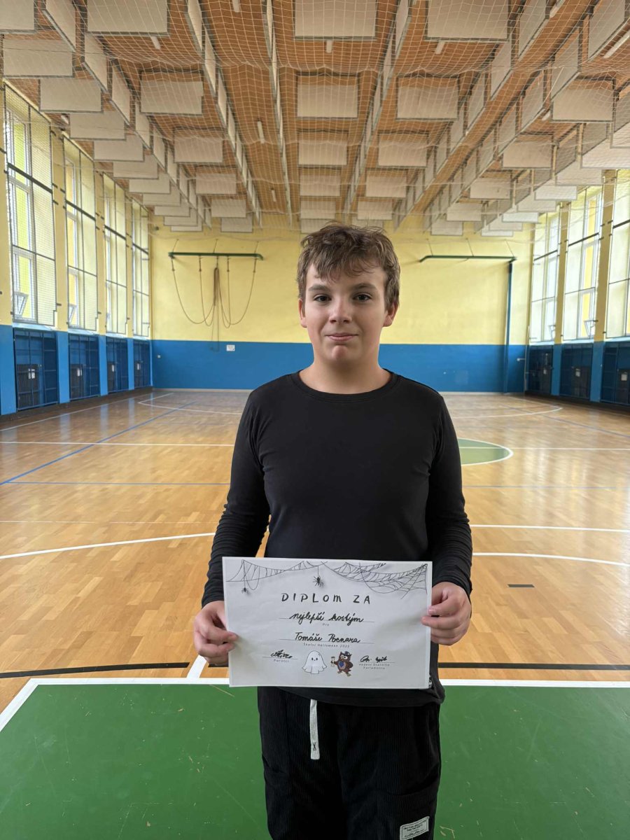 Halloweenová ocenění: Nejlepší kostým – Tomáš Pocnar (6.B) Nejlepší výzdoba třídy – 1.B (1. stupeň) a 6.B (2. stupeň) Nejlepší dýně – Damien Rákosník Gratulujeme všem vítězům a děkujeme za skvělou kreativitu!