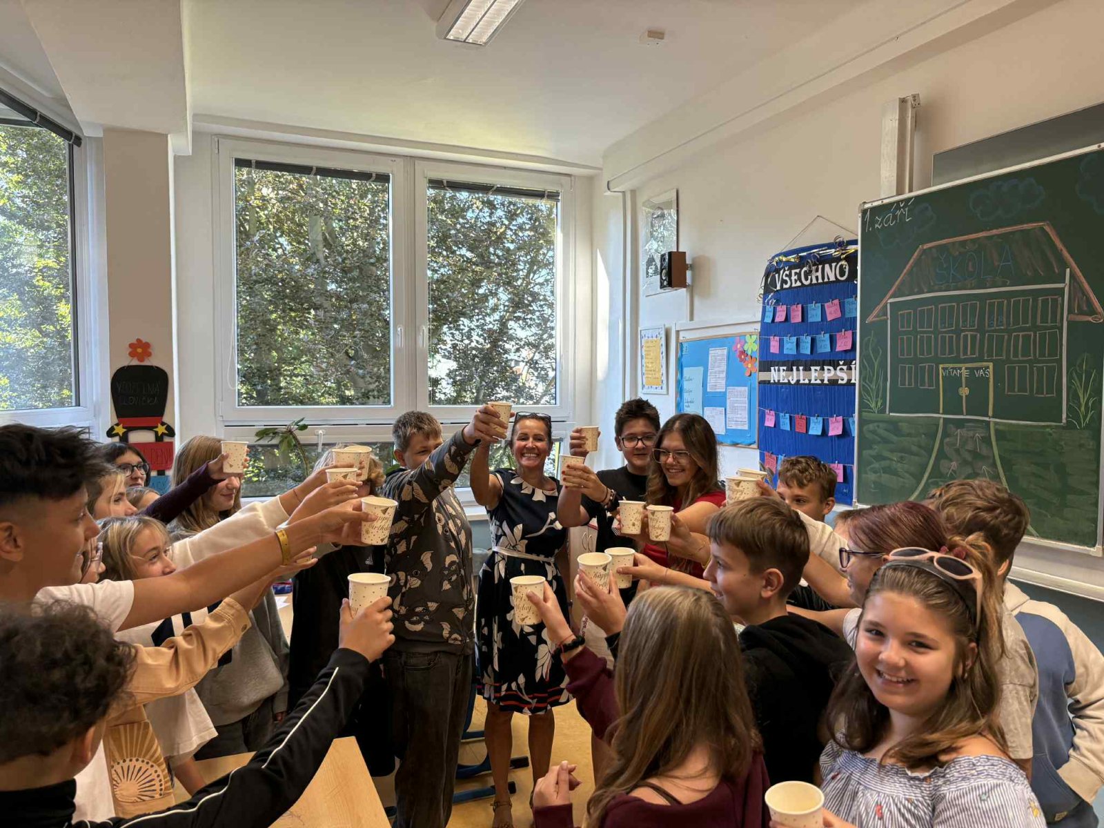S žáky 6. B jsme společně přivítali nový školní rok – a protože každé nové začátky si zaslouží oslavu, připili jsme si dětským šampaňským na zdraví, přátelství a spoustu hezkých okamžiků, které nás čekají.