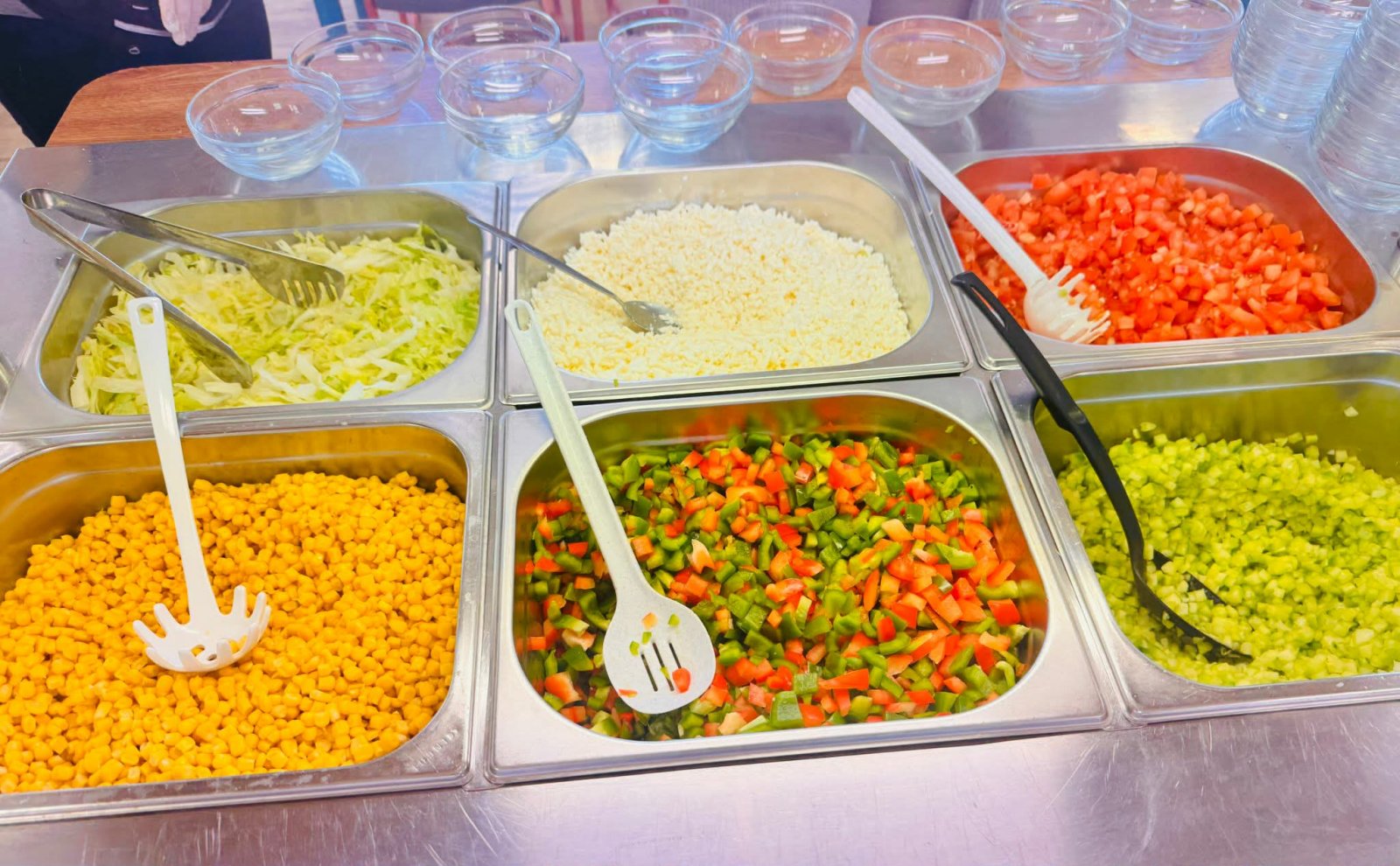 V naší školní kuchyni vaříme pro všechny žáky a zaměstnance s láskou. Snažíme se o to, aby jídla byla nejen chutná, ale i esteticky přijatelná. Součástí jídelny je i salátový bar, který všem žákům a zaměstnancům nabízí široký sortiment vždy té nejčerstvější zeleniny či ovoce. Dobrou chuť!
