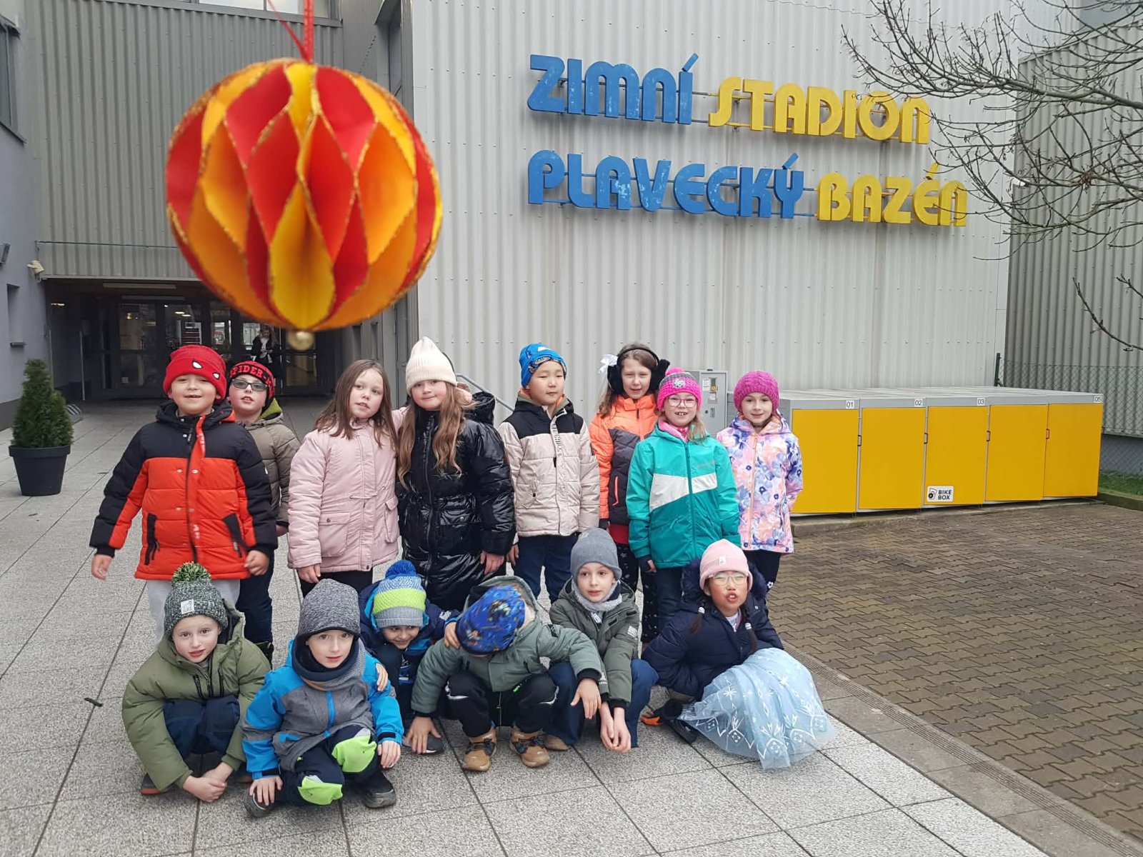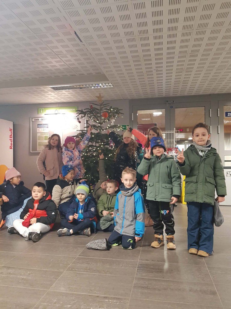 Dnes jsme naší vlastnoručně vyrobenou ozdobu předali a pověsili na stromeček ve vestibulu Sportareálu, kam se na ni můžete přijít podívat.