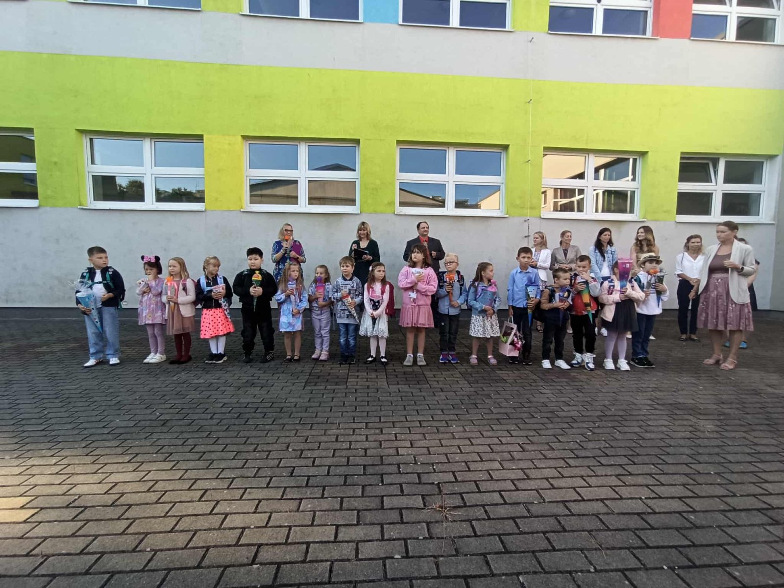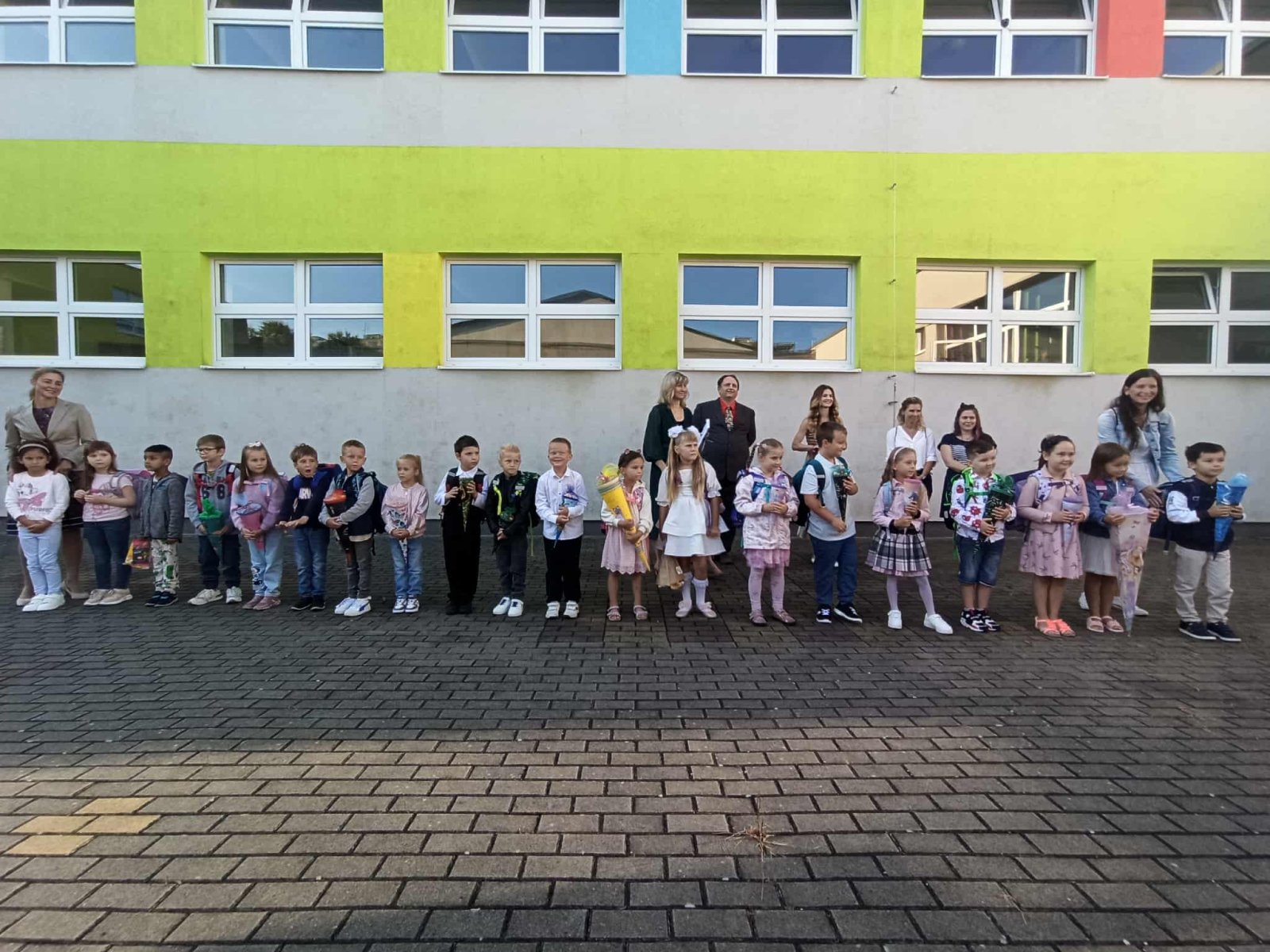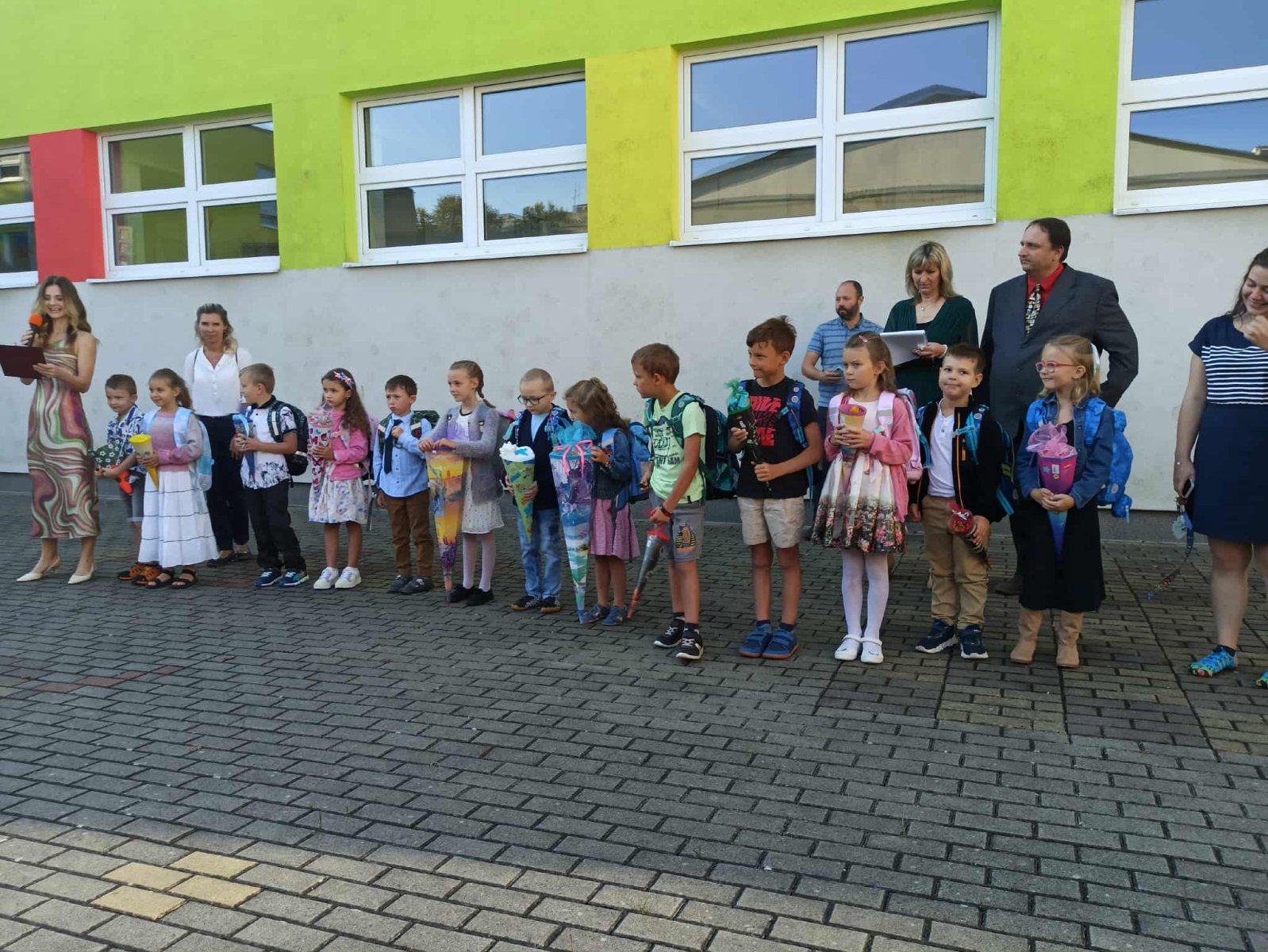 Dnes jsme na naší škole přivítali nové PRVŇÁČKY! Úvodní řeč pronesl ředitel školy Mgr. et Mgr. Tomáš Policer spolu se zástupkyní školy Mgr. Kateřinou Černou. K prvňáčkům a jejím rodičům promluvila i starostka města Česká Lípa Ing. Jitka Volfová, která měla tu čest být přítomna i u slavnostního okamžiku svého vnoučka, který do naší první třídy právě dnes nastoupil. Přejeme všem našim prvňáčkům, aby do své nové etapy života vstoupili tou pravou nohou a ať se jim na naší škole líbí!