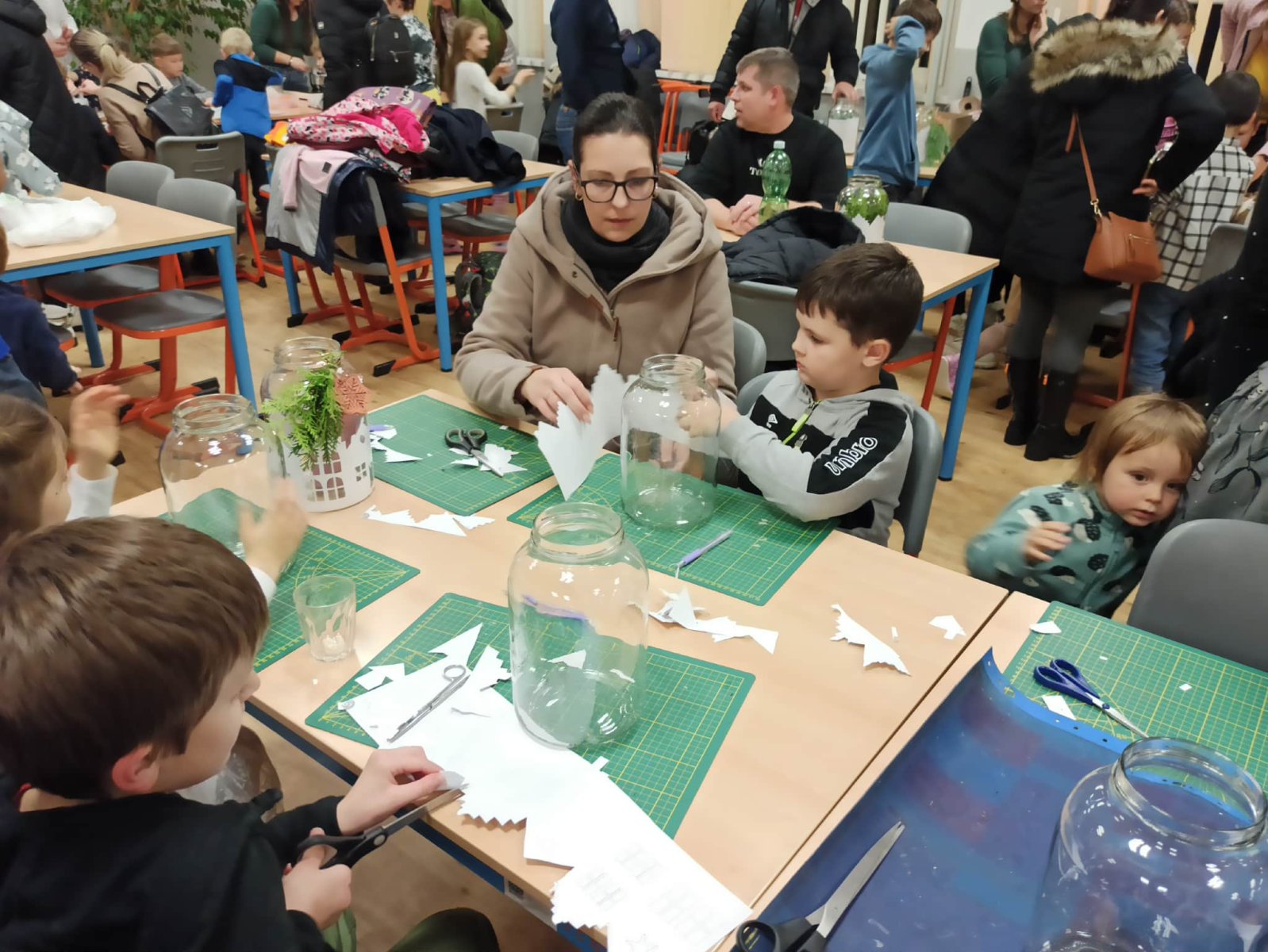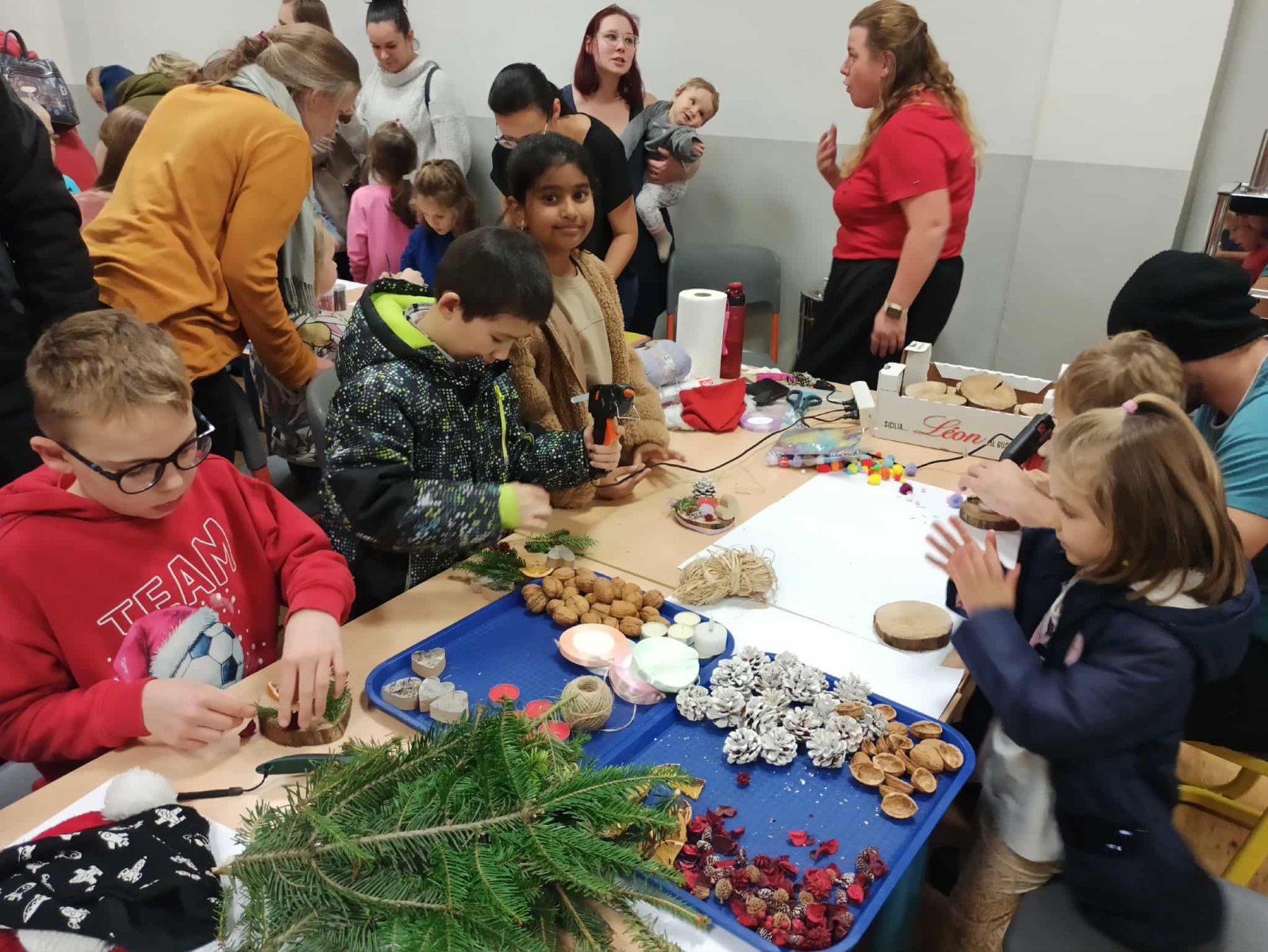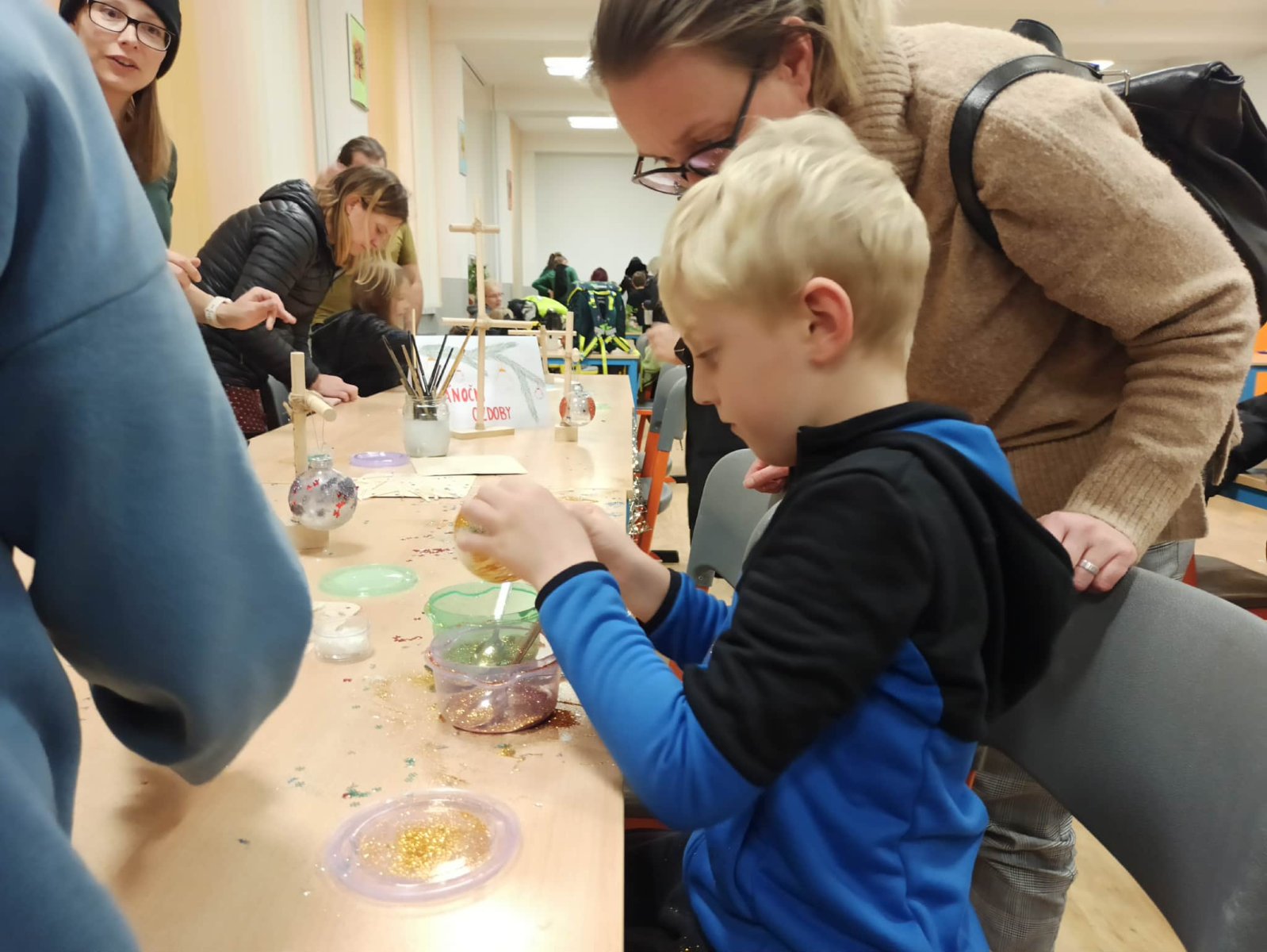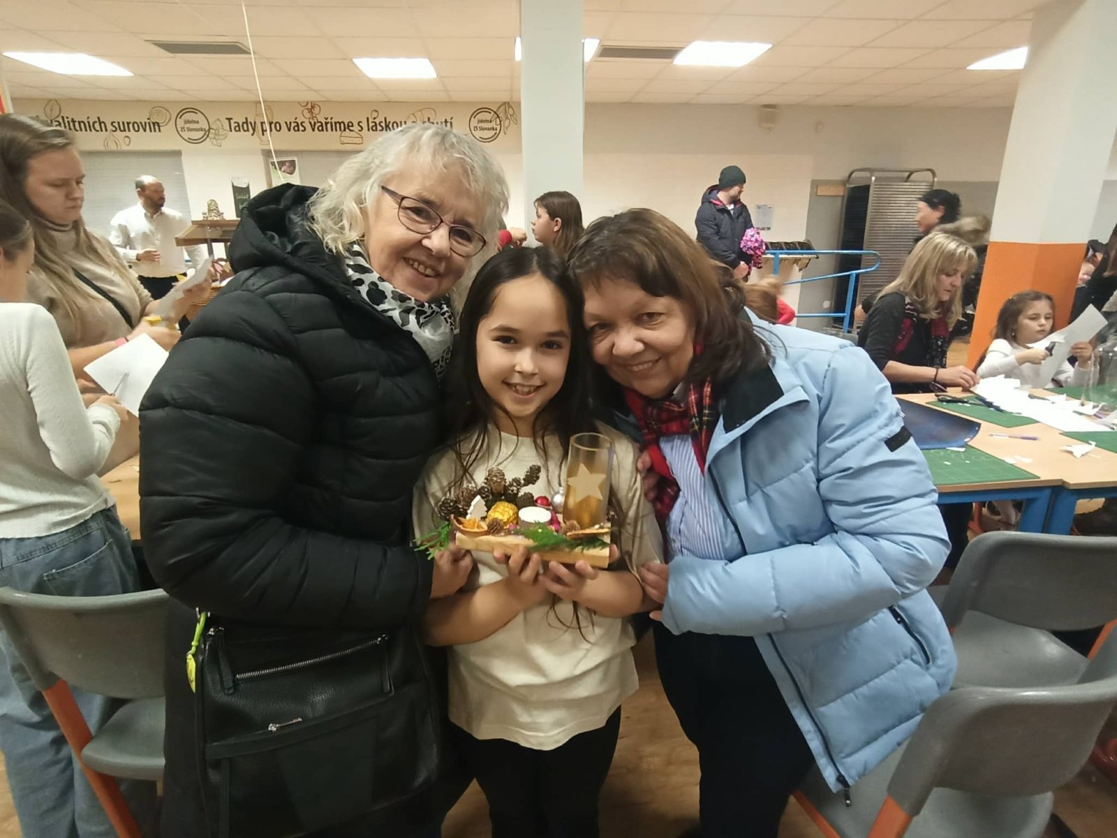 Paní vychovatelky z družinky letos připravily rodičům a přátelům školy skutečnou sváteční nadílku. Zájem byl obrovský – a každý si mohl vybrat podle chuti i tvořivého rozpoložení. Vyráběly se lucerničky, plovoucí svíčky, vlněné čepičky, andílci, závěsné větve na dveře i ozdobná prkýnka… zkrátka vánoční radost v každé podobě. Velké poděkování patří i našim šikovným kuchařkám, které nám dopřály tvarohový koláč a hřejivý čaj – bez nich by ta adventní pohoda nebyla úplná. Děkujeme všem, kteří dorazili a svou přítomností vytvořili krásnou, laskavou atmosféru.