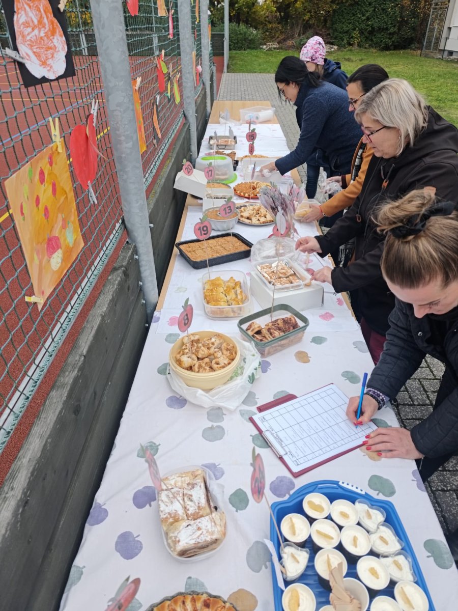 Na našem školním hřišti se uskutečnil druhý ročník sladkého jablečného odpoledne s rodiči. Maminky, babičky i tatínkové se s nadšením zapojili do soutěže o nejlepší moučník z jablek, která probíhala hned ve čtyřech kategoriích.