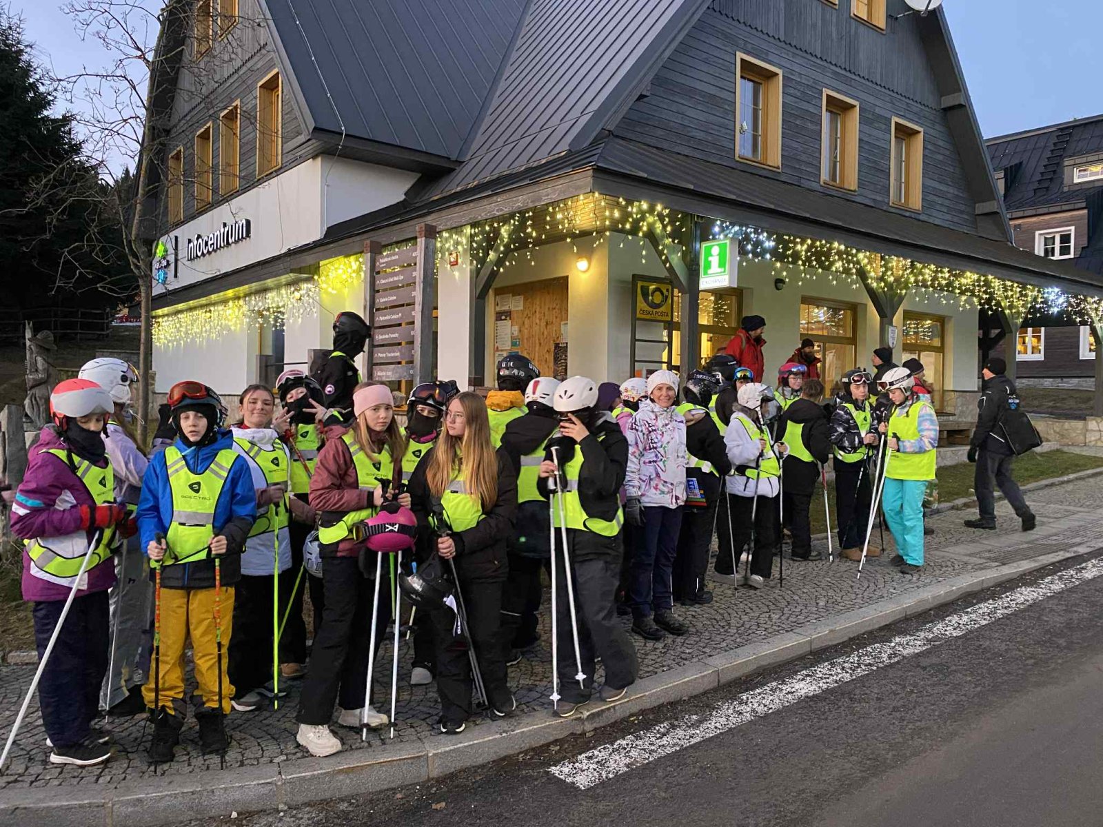 Stihli jsme se ubytovat, vyrazit na svah, rozdělit se do družstev a co víc - seznámili se s pravidly bezpečného chování na sjezdovkách.