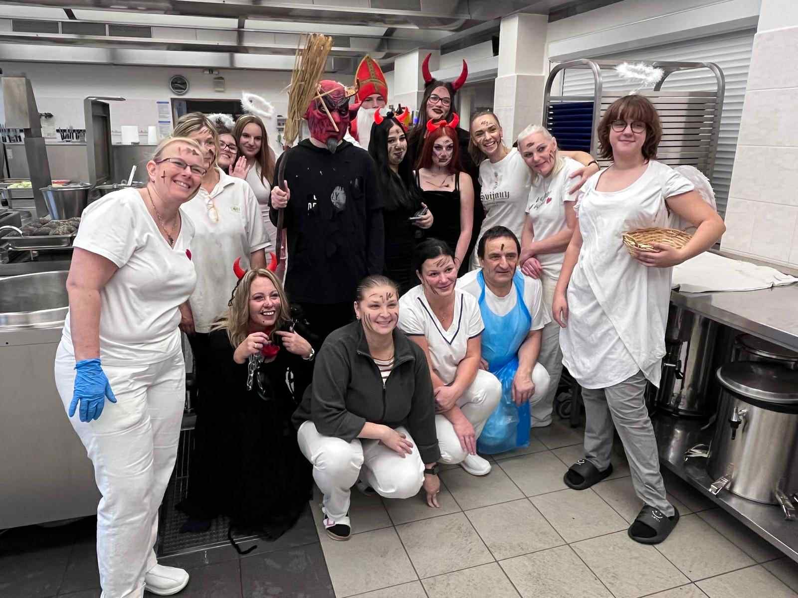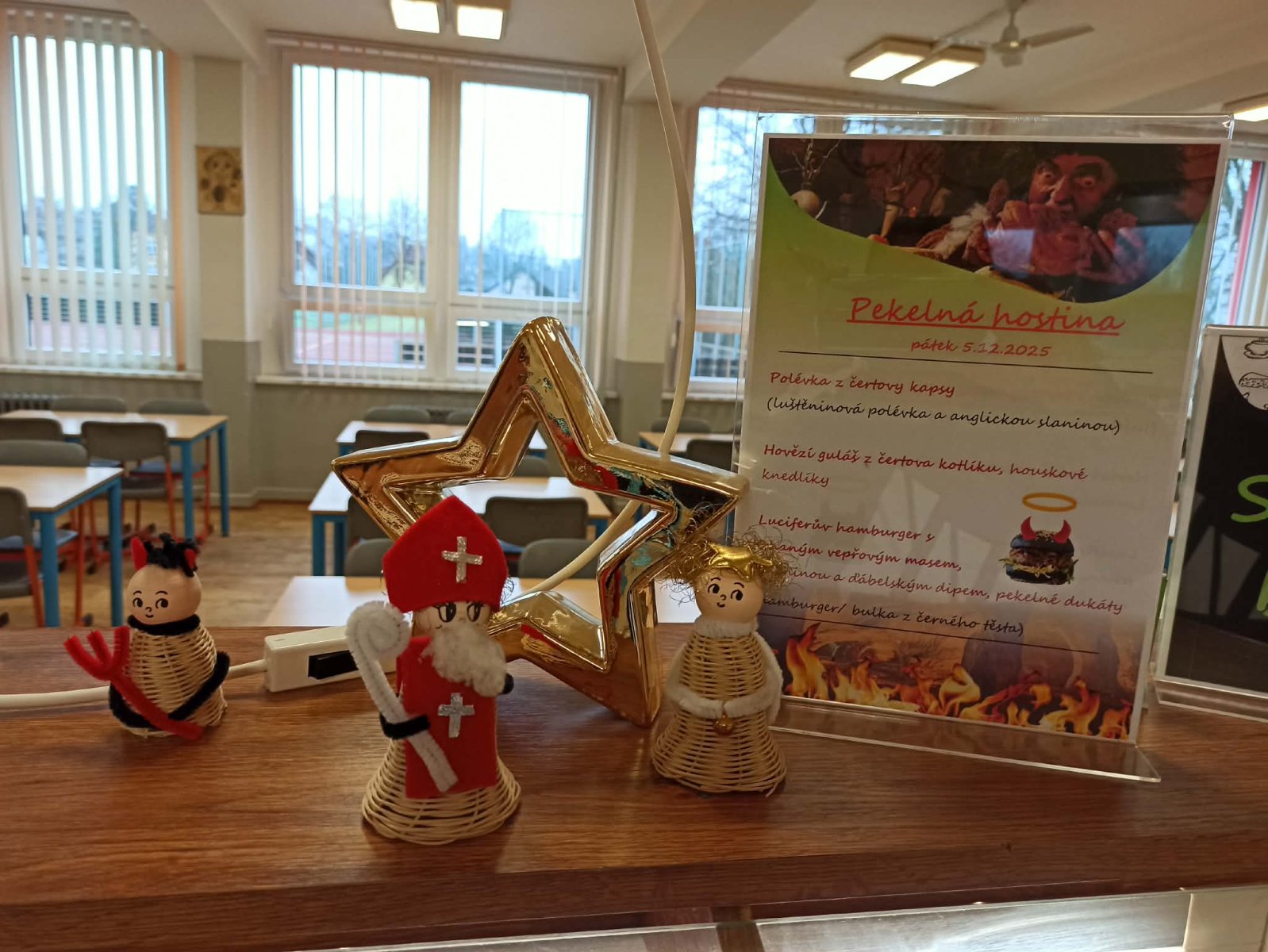 Dnes se ve školní jídelně pořádala PEKELNÁ HOSTINA. Servírovala se polévka z čertovy kapsy a Luciferův hamburger. Paní kuchařky pak pro žáky celé školy a její zaměstnance připravily Mikulášské balíčky. Děkujeme!