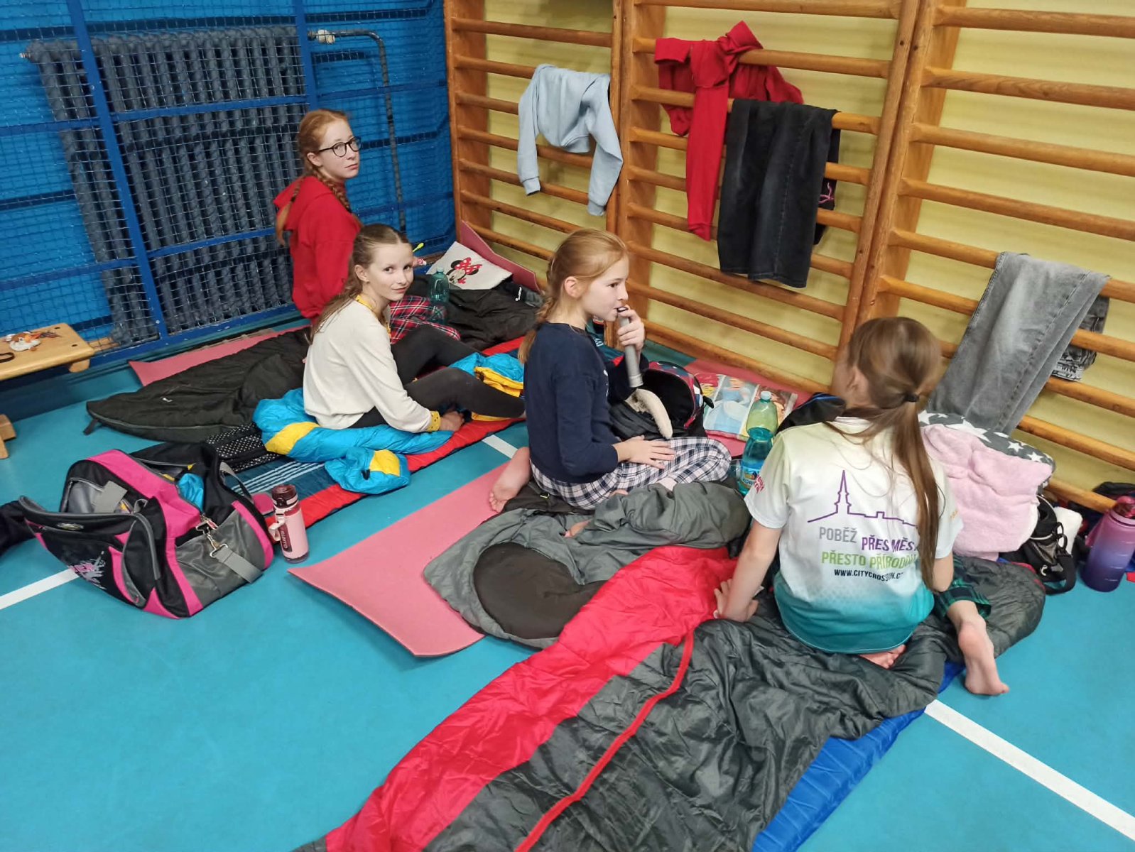PŘESPÁVAČKA VE ŠKOLE - nejoblíbenější činnost našich žáků. Dnes ji úspěšně zakončilo 25 žáků školního klubu. Včerejší večer jsme zahájili procházkou večerní Českou Lípou (zámecké zahrady, náměstí T.G.M., stromeček u KD Crystal). Ve škole pak po návratu nechyběly tradiční míčové hry. Večerka ve 0:30. Kéž by všichni usnuli hned (zbožné přání pana učitele). Ve 4:00 už ale byl dá se říct klid :) Budíček 7:30 a do 9:00 opouštění školy. Zvládli jsme to! Teď už zbývá jen popřát si krásné a klidné Vánoce a úspěšný nový rok 2026!