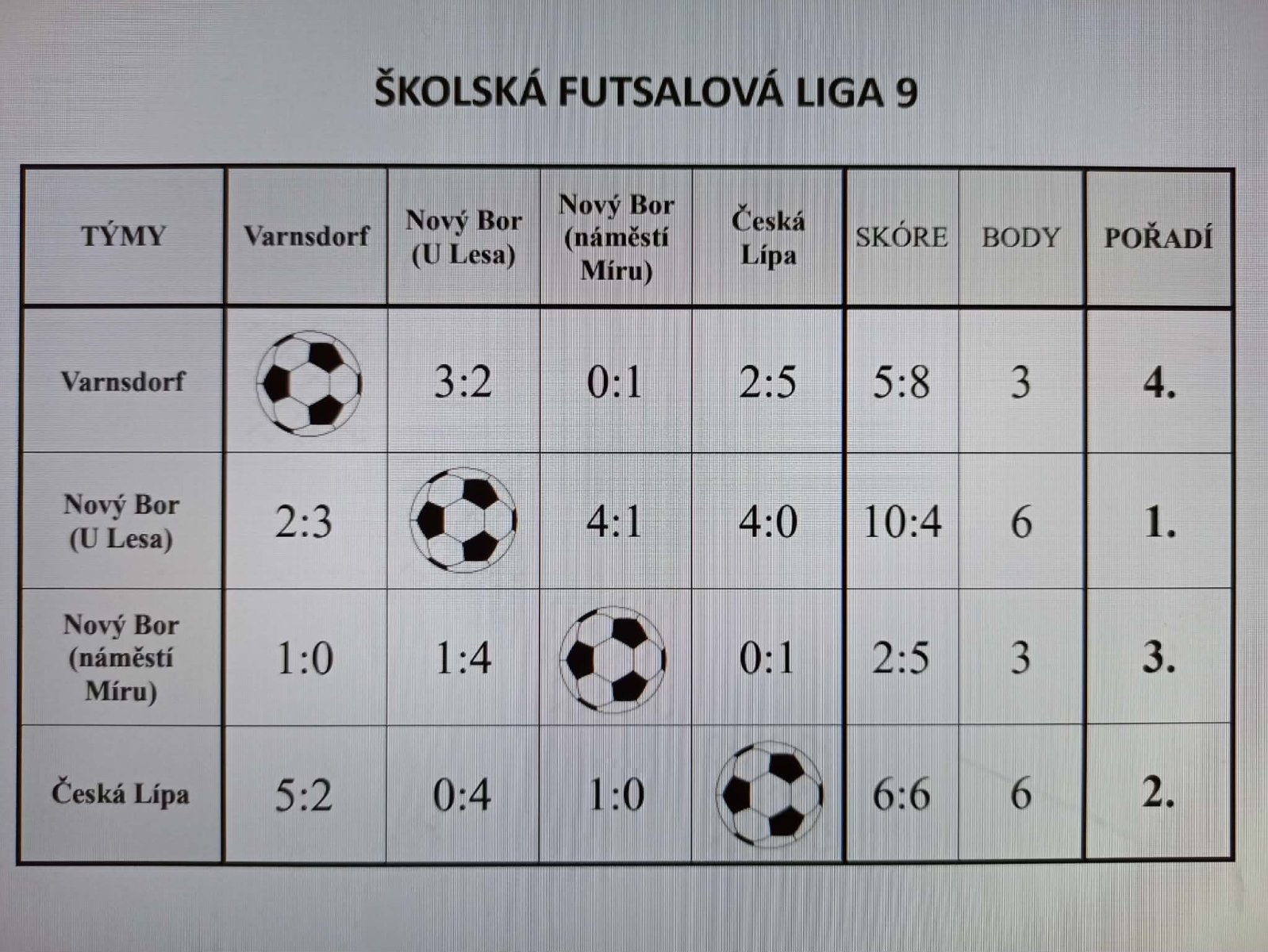 1. ZŠ Nový Bor Les 6 bodů