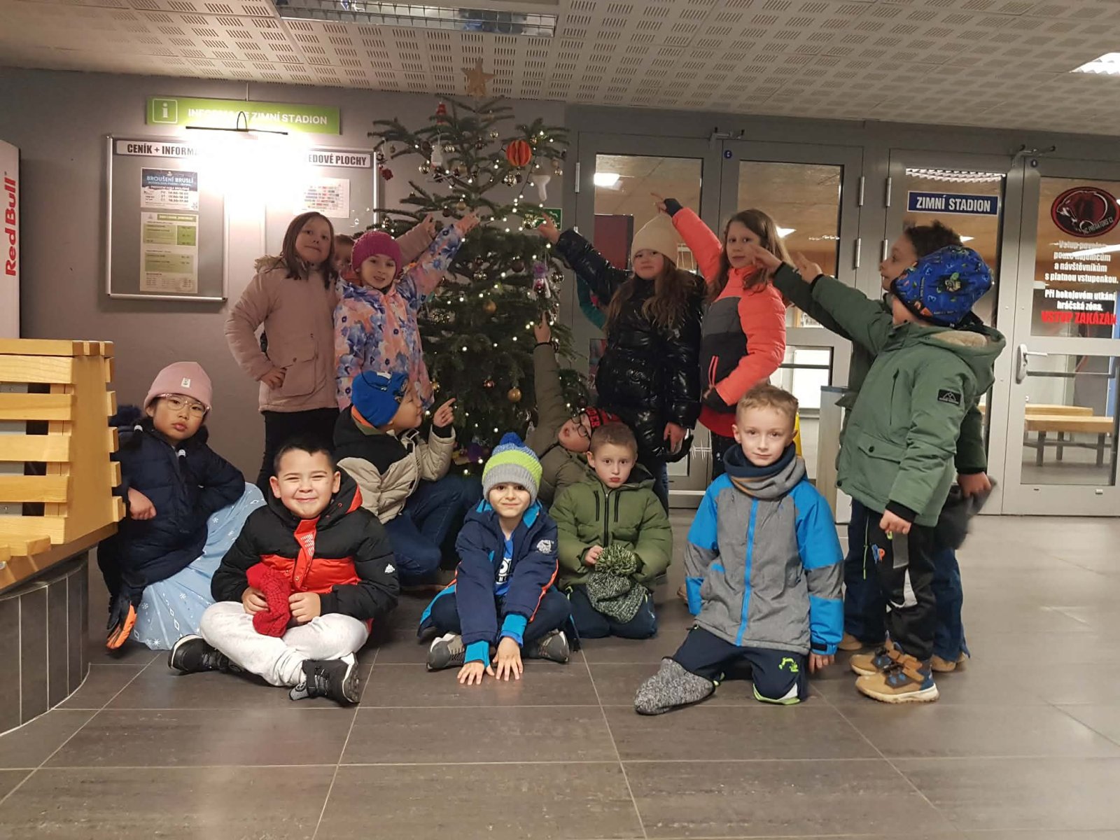 Dnes jsme naší vlastnoručně vyrobenou ozdobu předali a pověsili na stromeček ve vestibulu Sportareálu, kam se na ni můžete přijít podívat.